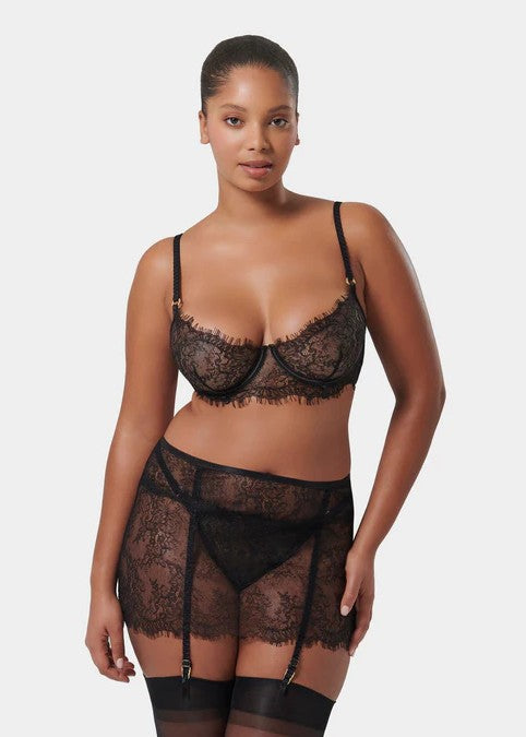 Unleash your daring side with the Camelia Skirt Suspender! Crafted with delicate lace and flirty eyelash trims, this wireless suspender frames your silhouette while providing ultimate comfort.