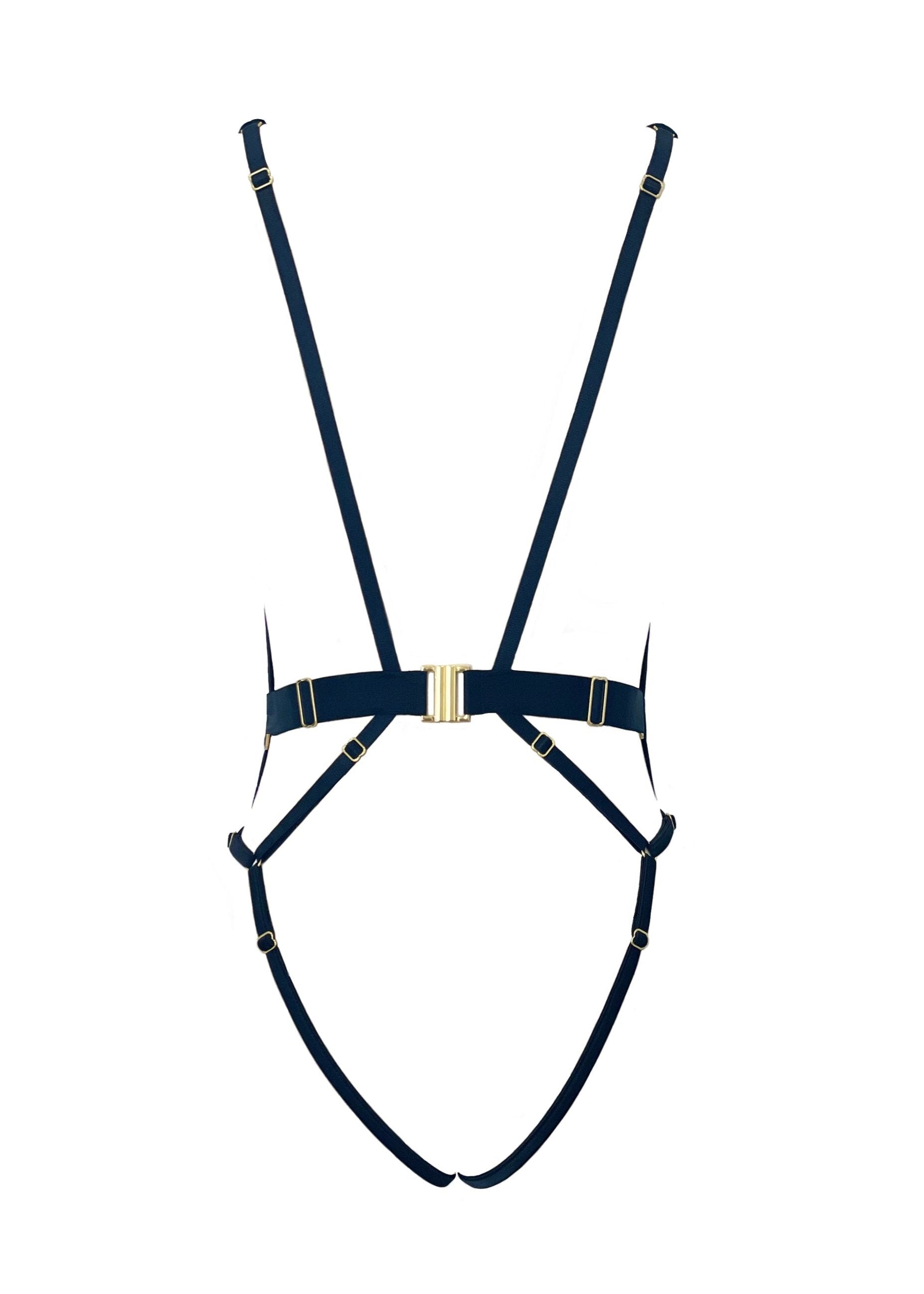 - crafted from sheer stretch mesh and ultra-premium gold hardware.