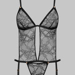 The Le Petit Secret Lace Body is made to seduce with gorgeous black lace and detachable thong design. Featuring an openable crotch with magnetic button fastings and adjustable suspender straps.