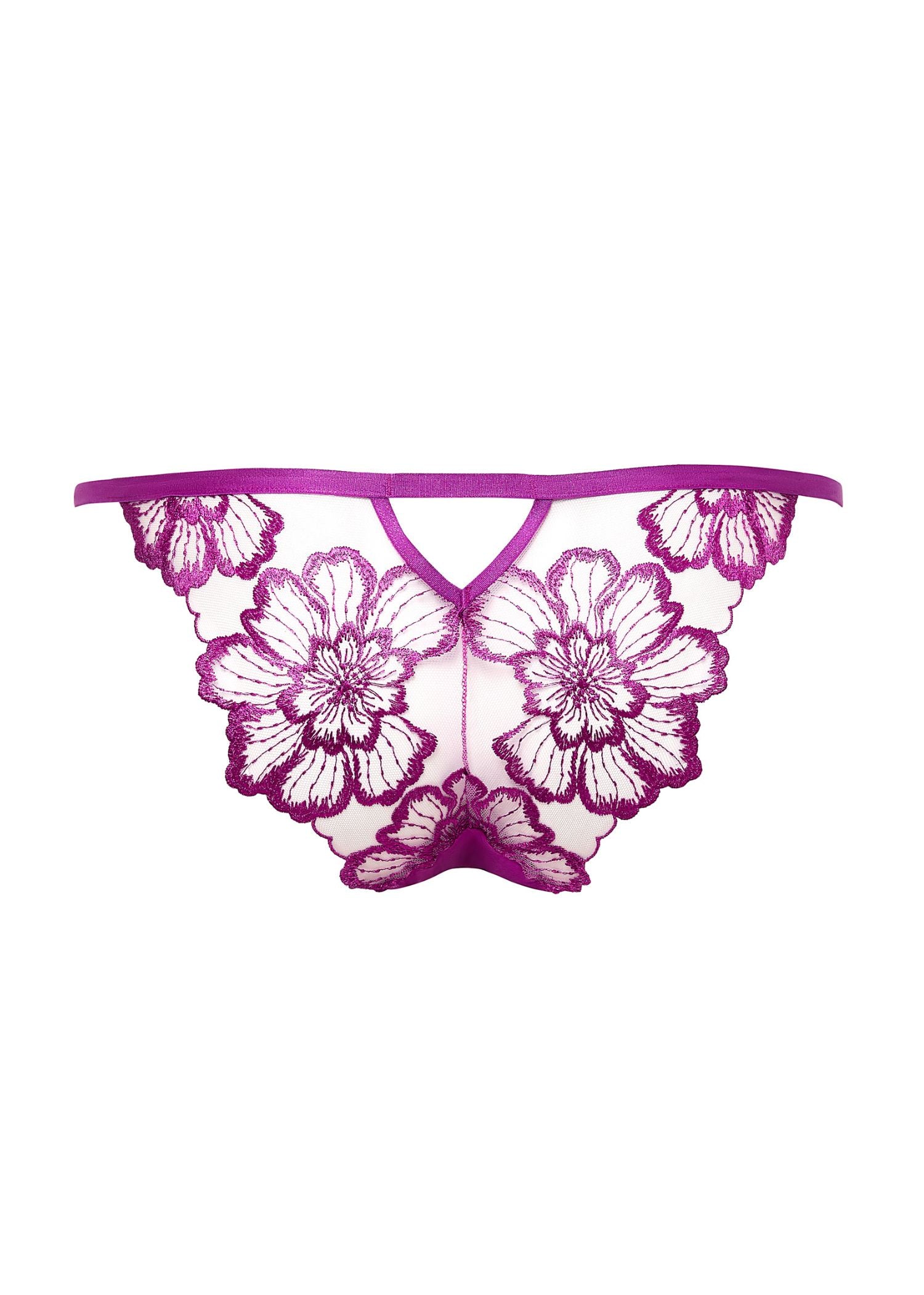 The Catalina Brief is the epitome of luxury lingerie. This bright violet panty features a sheer finish that provokes and captivates, with intricate embroidery and delicate floral motifs to complete the refined elegance. Whether yo