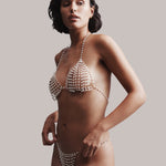 The Bluebella Pearl Thong exudes sensual elegance with its delicate pearls, designed to perfectly complement the Pearl Soft Bra. Add a touch of luxury to your lingerie collection.