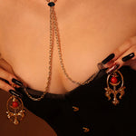 Explore your desires with UPKO Pulling Chain Nipple Clamps. With an enhanced adjustable range, you can precisely control pain levels for a personalized experience that balances beauty and intensity. Featuring a wider clamp area to reduce discomfort, an elegant curved design that fits snugly on nipples, and a textured nut for easy twisting. The adjustable chain adds a touch of elegance and can easily transform into a collar with leash.