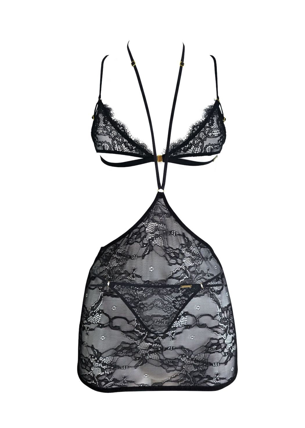 AVAM MAGNETISM LACE Triangle Bra, Panty, & Skirt Harness Set | Avec Amour Lingerie