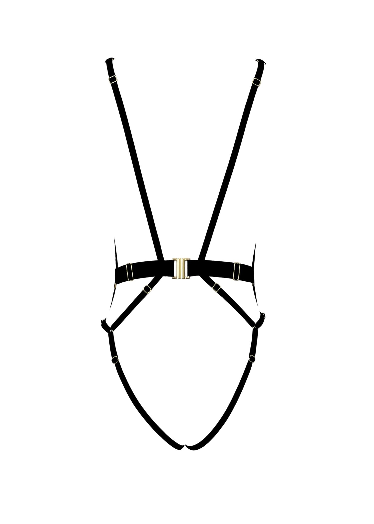 - crafted from sheer stretch mesh and ultra-premium gold hardware.